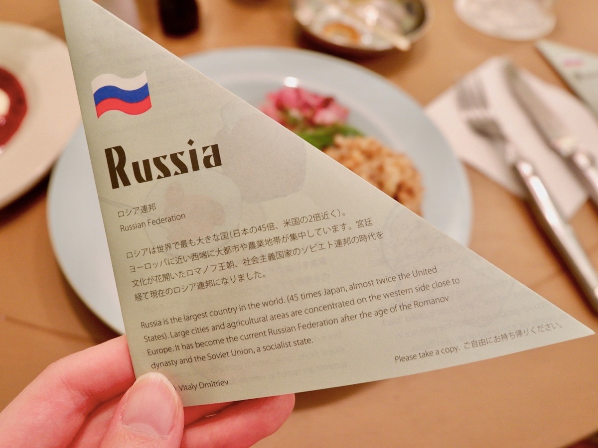 今回メインでご紹介するのが、2020年2月〜4月のスペシャルメニューとなるロシア料理!