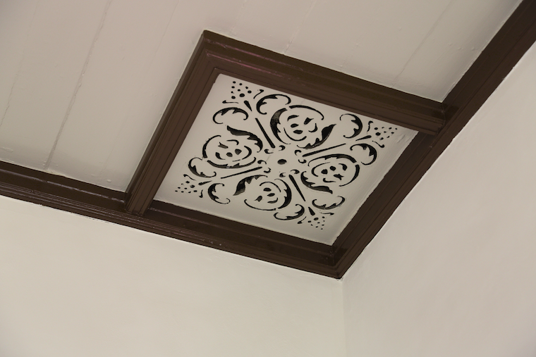 各部屋の天井の角には、かわいらしいデザインの透かし彫りを発見!隅々まで注目するといいことがあるかも。