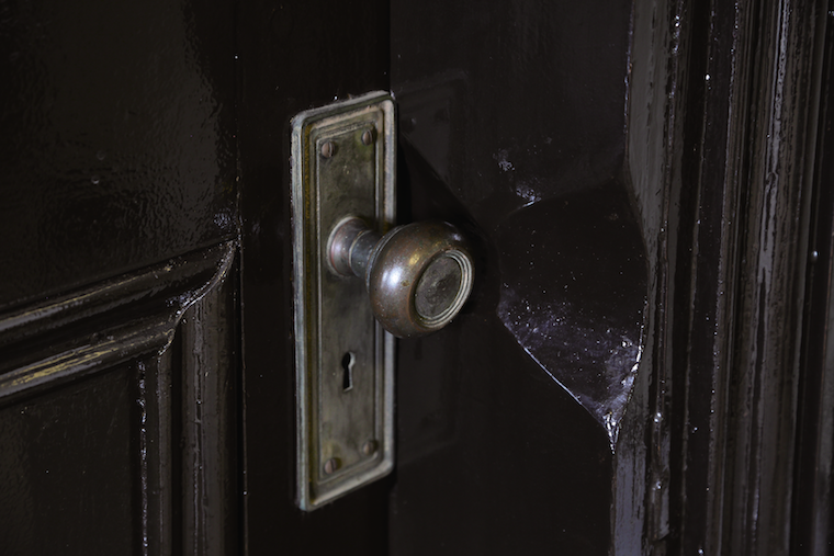 「ドアノブ」の概念が当時はなかったため、各部屋のドアノブ横の柱はノブがつかめるようにくり抜かれています。