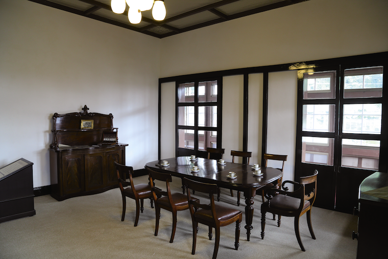 正面にポーチが付き、大きな窓が特徴的なコロニアル様式の建物。設計したのはイギリス人ですが、実際に建てたのは薩摩の大工さんだそう。和洋折衷なハイカラな洋館の雰囲気に加え、当時の暮らしぶりを再現した部屋がノスタルジックな気分にさせてくれそうですよ。