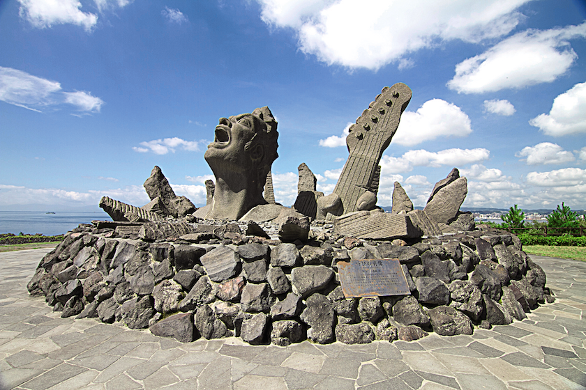 お次は、鹿児島市出身のミュージシャン・長渕剛が伝説の野外ライブを行ったと伝わる赤水展望広場へ。大迫力のモニュメント「叫びの肖像」は必見! 青い空とマッチした眺めもすばらしいですよ。