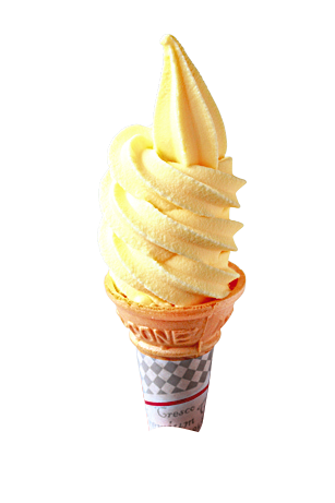 さわやかな甘味が人気な「桜島小みかんソフト」(250円)。