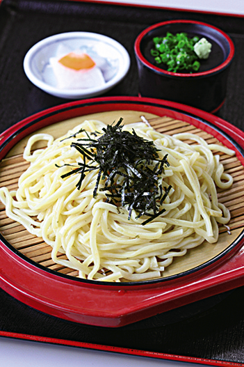 小みかんざるうどん 500円。かき揚げなどが 付くセットは 800円。レストランでは桜島の農産物や海産物を使ったここでしか食べられないメニューも味わえるんです。
