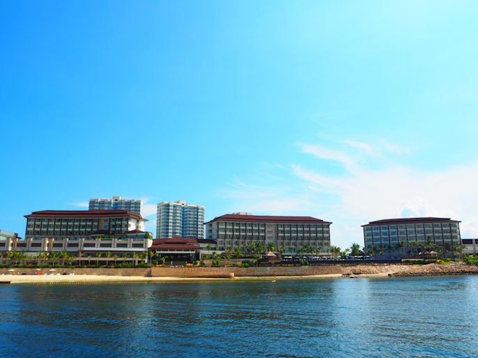 空港から車に乗って約30分で、セブ島と隣接するマクタン島北西部に位置する「デシュタニ マクタン セブ」へ到着!3つの客室棟からなる、セブ島最新リゾートホテルです。