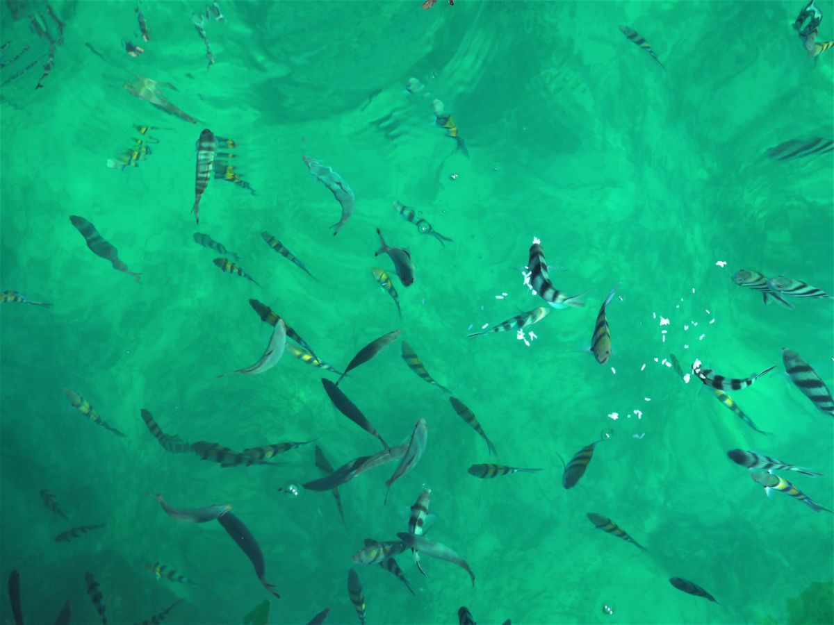 島めぐりをした後は、お待ちかねシュノーケリングタイム♪ 肉眼でもこのくらいお魚がみられます!ゴーグルを身につけたら、エメラルドグリーンの美しい海へ!! 黄色や青、色鮮やかなお魚たちに囲まれて、きっと忘れられない思い出になるはずです。