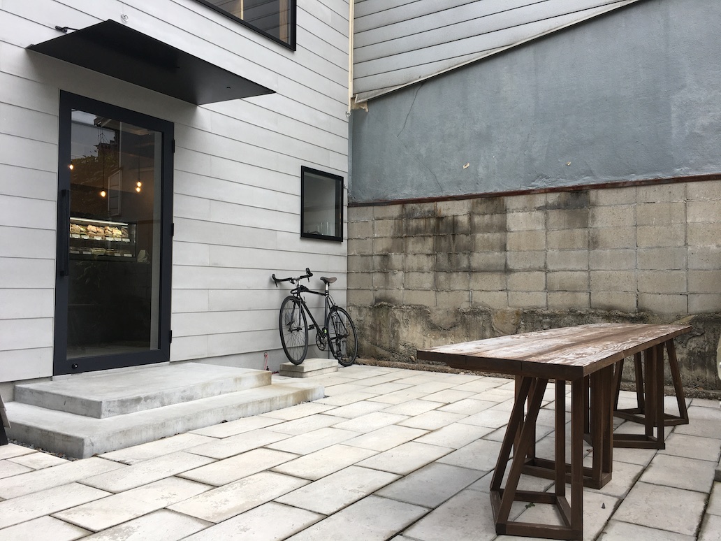 店内にイートインスペースはなくテイクアウトのみですが、テラスに置かれたテーブルで食べることもできますよ。