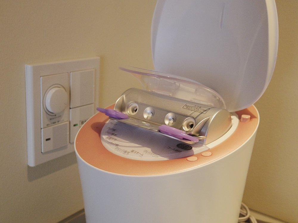 「博」にはアメニティとして美顔器も設置。また洗面所には、熱ではなく振動で髪を乾かし、ボディにも使えるという口コミで評判のドライヤー「ルーブルドー レヴィ」も備え付けられています。