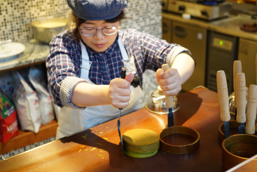 抹茶は、宇治で860年間茶商を続ける「通圓」のものを使用されているとのこと。京都では創業100年以下のお店を“老舗”と呼ぶと笑われますが、「通圓」は860年。年季の違いは、茶の香り高さも違いが歴然です。まぁ、食べてみてください。