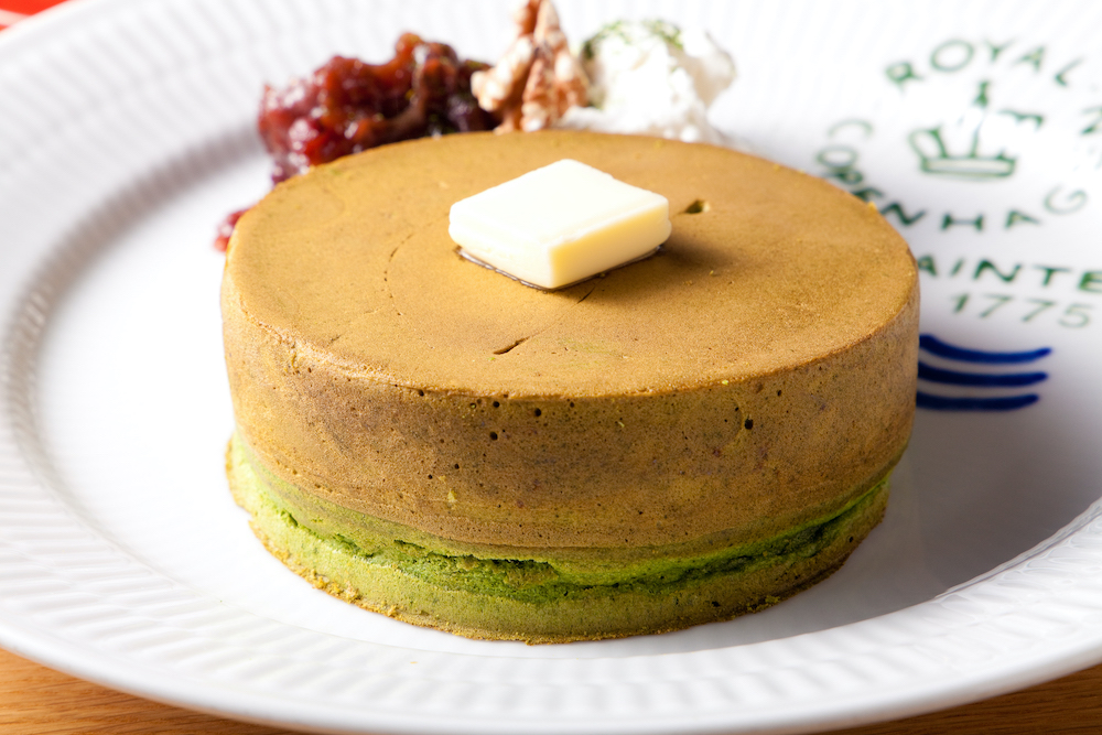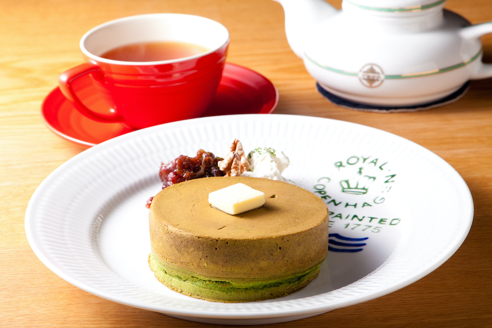 『宇治紅茶館』では、ムレスナティーの茶葉を購入できるだけでなく、ティーハウスでランチやスイーツの提供もあります。まずご紹介したいのが、ティータイムの人気メニュー「究極のホットケーキ」。