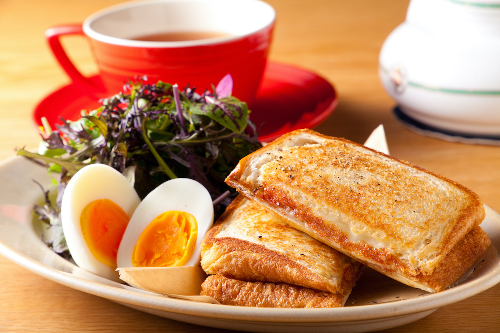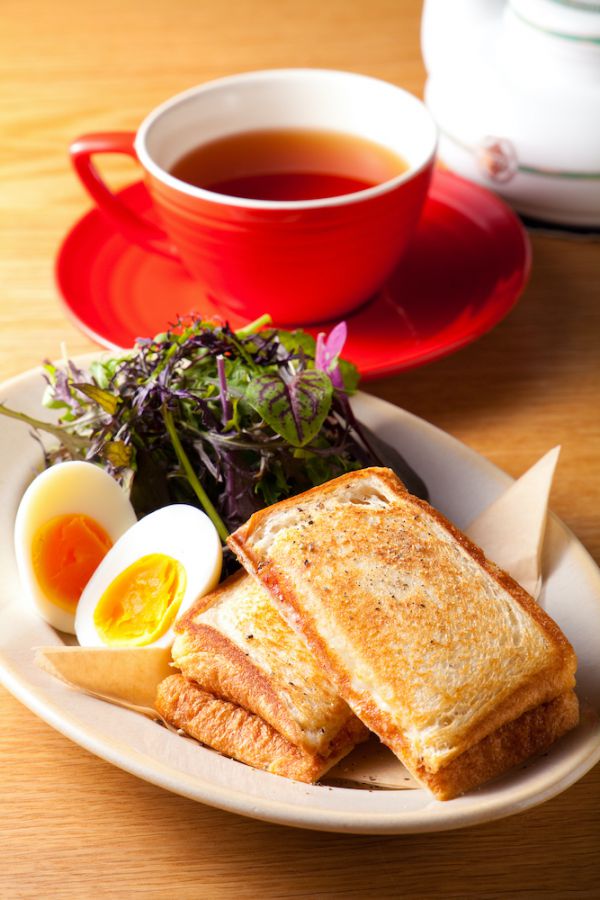 写真は、ホットサンドイッチプレートのティーセットランチ。たっぷりとポットに入った紅茶がついてくるので、とってもお値打ち。