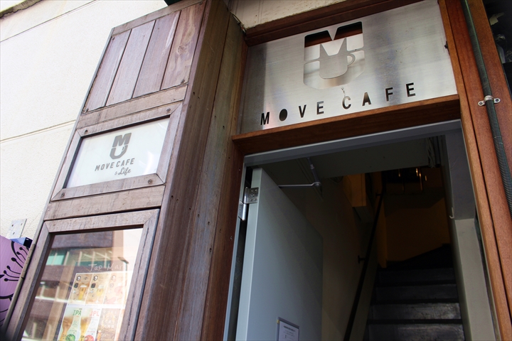 新宿三丁目駅から徒歩4分、デパートなどが立ち並ぶ大きな通り沿いにある「MOVE CAFE(ムブ カフェ)」。