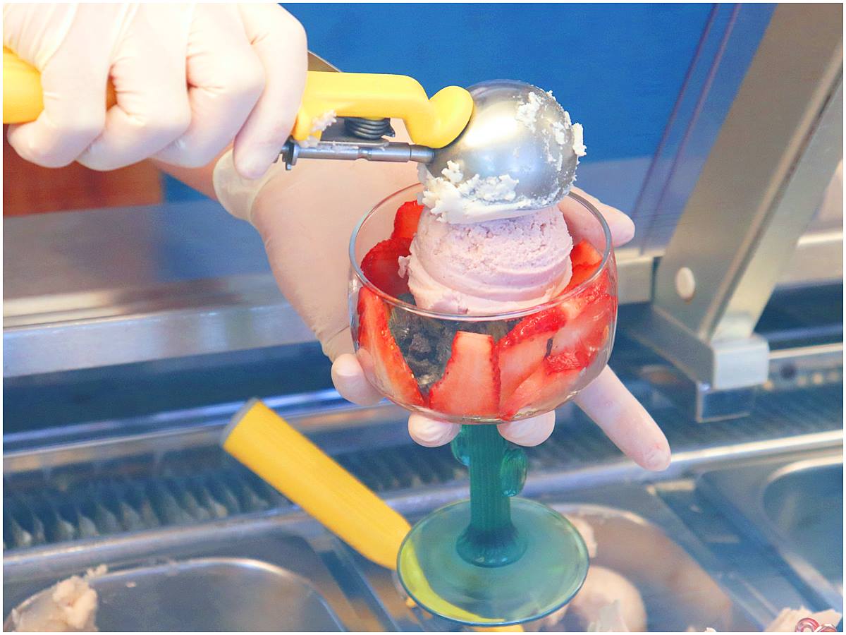 なんと、好きなアイス3種類にいちごがまるごと1パック乗っているんです!