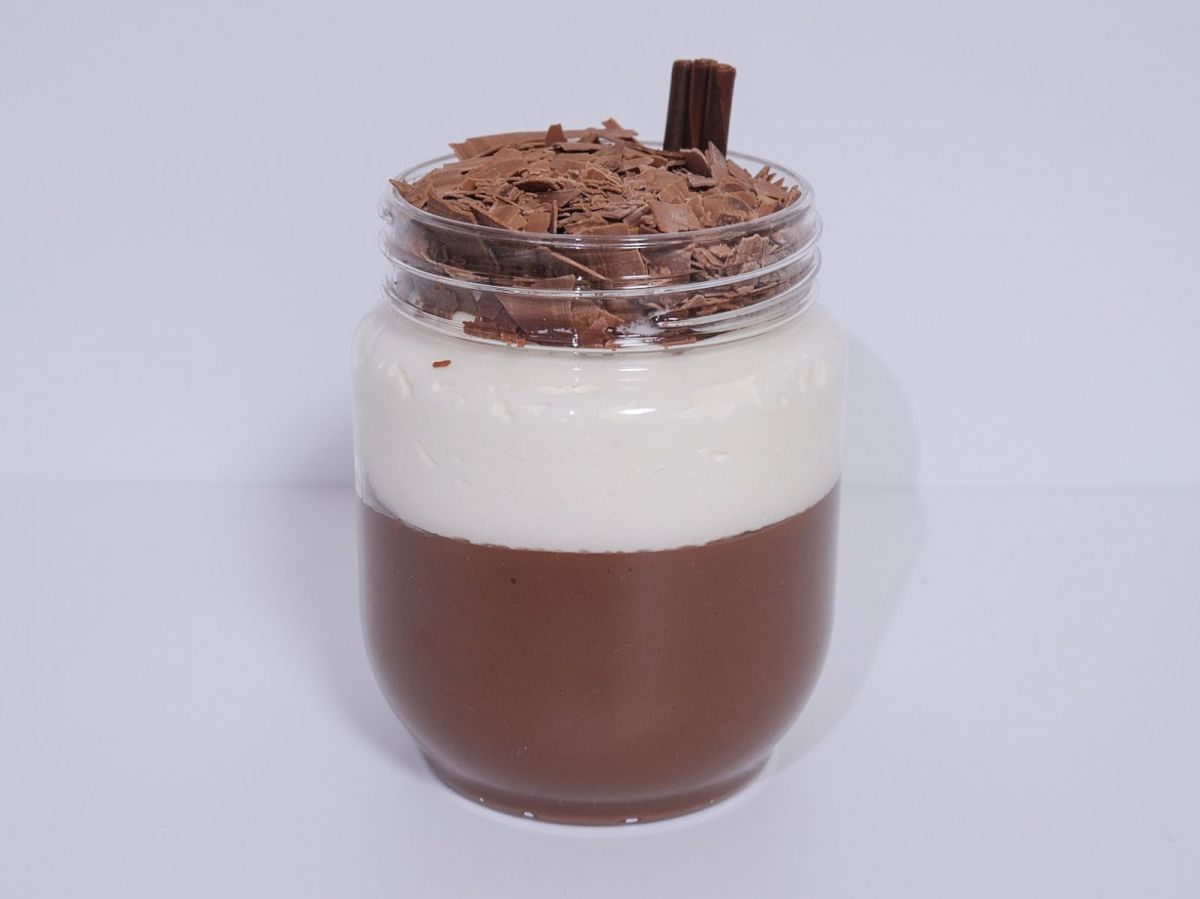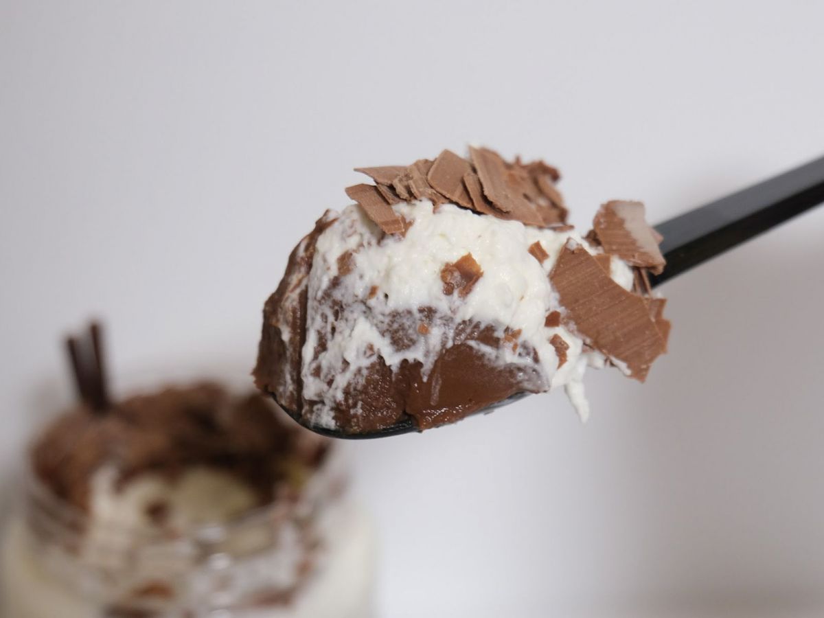 コロンとした丸い容器に入っており、表面のトッピングには削りチョコレートがたっぷり!