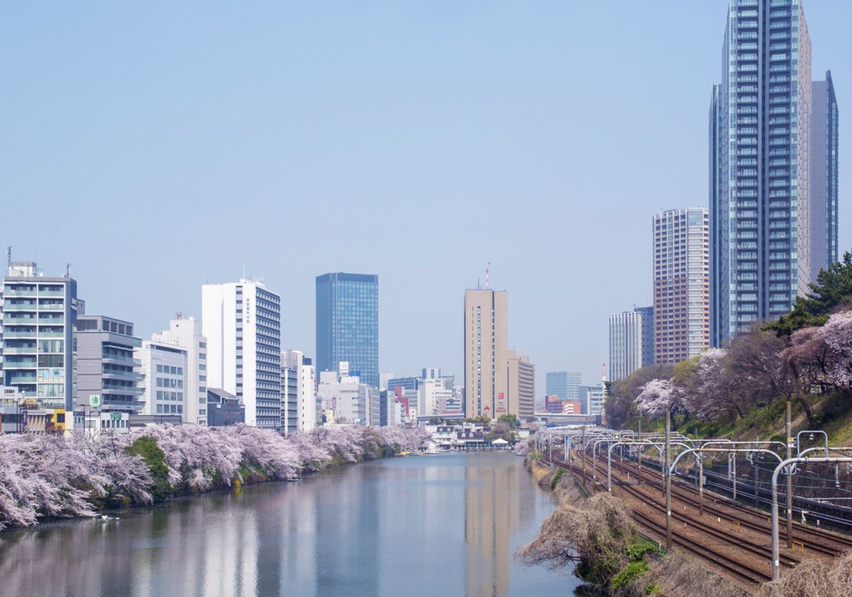 飯田橋〜市ヶ谷の間の外堀沿いに沿って植えられた桜並木は、春のお散歩コースの定番のひとつ。そんな場所にある「飯田橋サクラテラス」は、その名の通り春には壮観な景色を一望できる複合施設です。