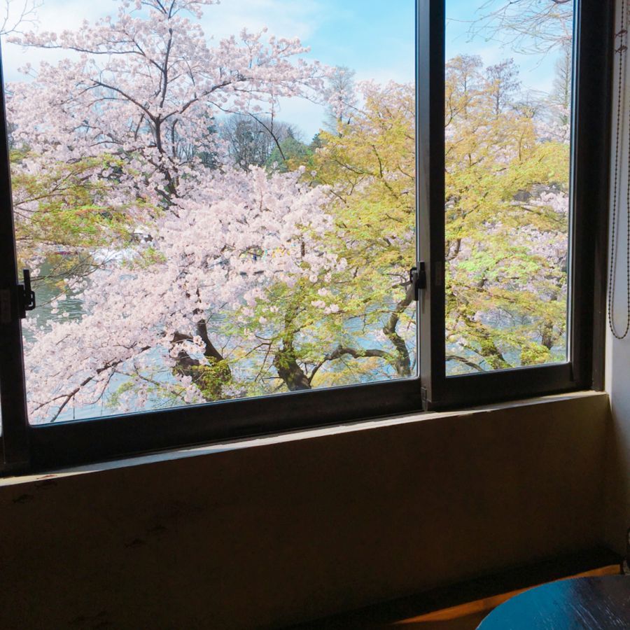 窓はお席のすぐ側なので間近に桜を鑑賞できるのがうれしいですね。