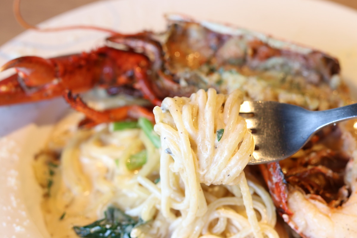 貝のダシを使って味に奥行きをつけたクリームソースは、コク深くて旨みもたっぷり。グリルしたオマール海老を大胆にトッピングし、見た目も味わいもかなり贅沢です。ボリュームもしっかりあって、大満足できるはず。