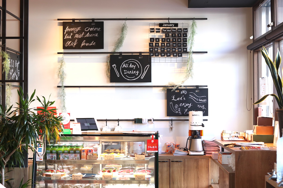 ここは、元リーガロイヤルホテルのパティシエがオーナーを務めるオールデイダイニング。水曜日以外は10〜24時までオープンし、モーニングもランチもディナーも夜カフェも楽しめる、魅力的なお店です。