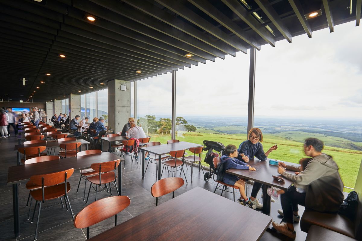 約1700haの広さを有する日本一広い公共牧場「ナイタイ高原牧場」。その頂上に新設された展望施設が「ナイタイテラス」です。