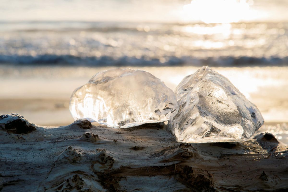 1月中旬から3月上旬にかけて、厳寒の豊頃町・大津海岸に現れる光景です。冬の北海道絶景として新定番となったこの現象は、十勝川の河口の氷が浜に打ち上げられたもの。波に揉まれることで、透き通った宝石のようになります。