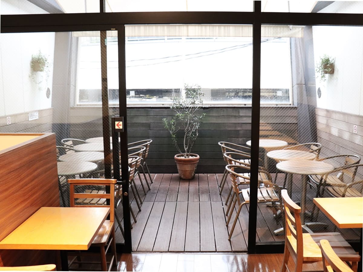 ゆったりしたテラス席。天気のいい日にはこちらでゆっくりするのがおすすめです!