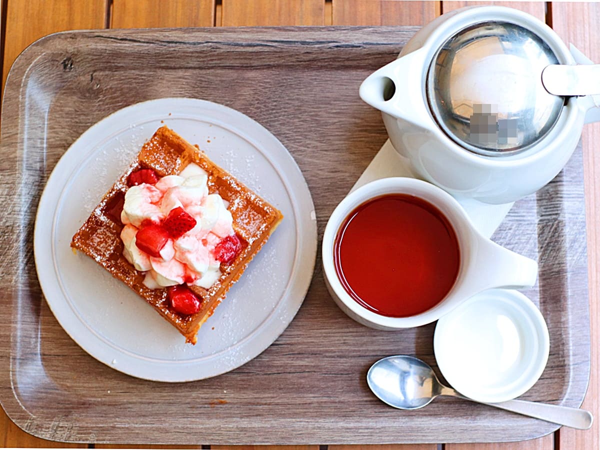 たっぷりの紅茶とボリューミーなワッフルで優雅なモーニング。それでこのリーズナブルな価格はうれしいですね!
