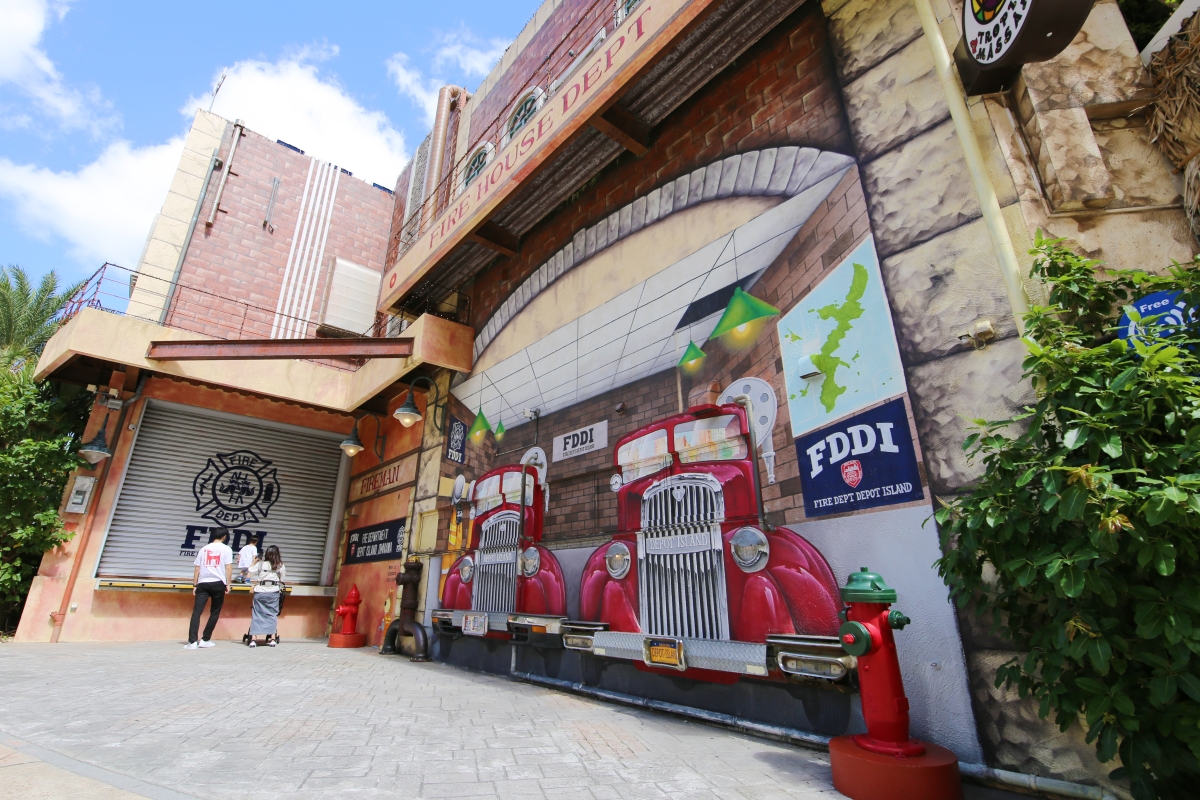 消防車の向かいにある店舗も人気の撮影スポットです。ぜひベティちゃんと同じポーズをキメてみて。