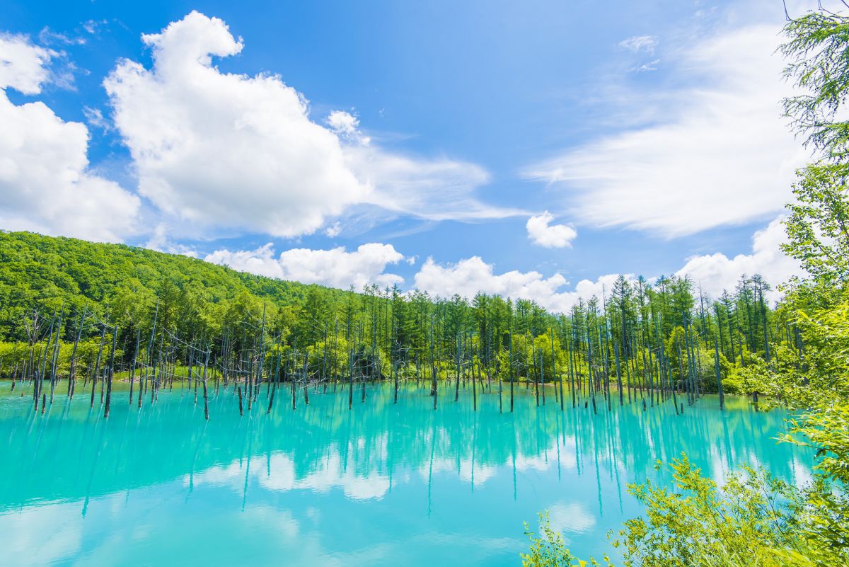 まるで絵具を溶かし込んだような偶然が生んだ青い池「白金 青い池」