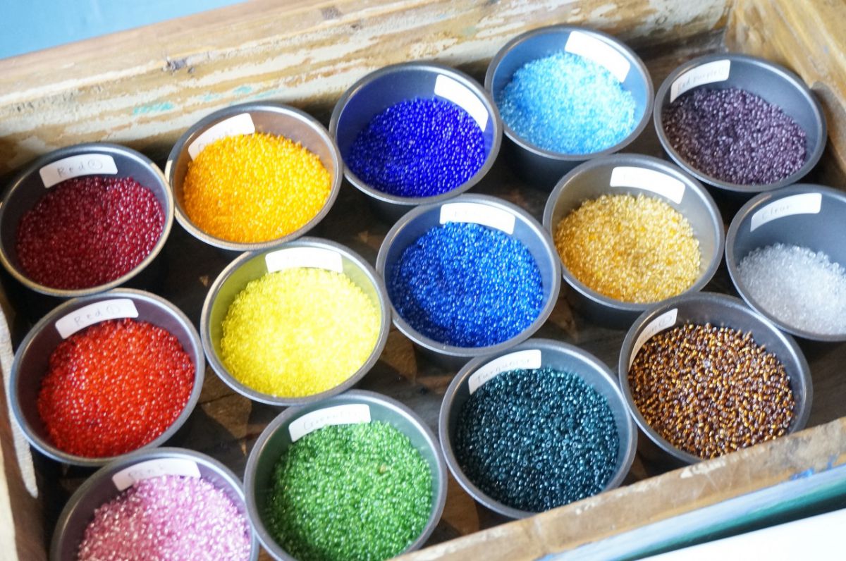こちらが今回使用するタイル。さまざまな色の細かなタイルを貼り合わせていきます。
