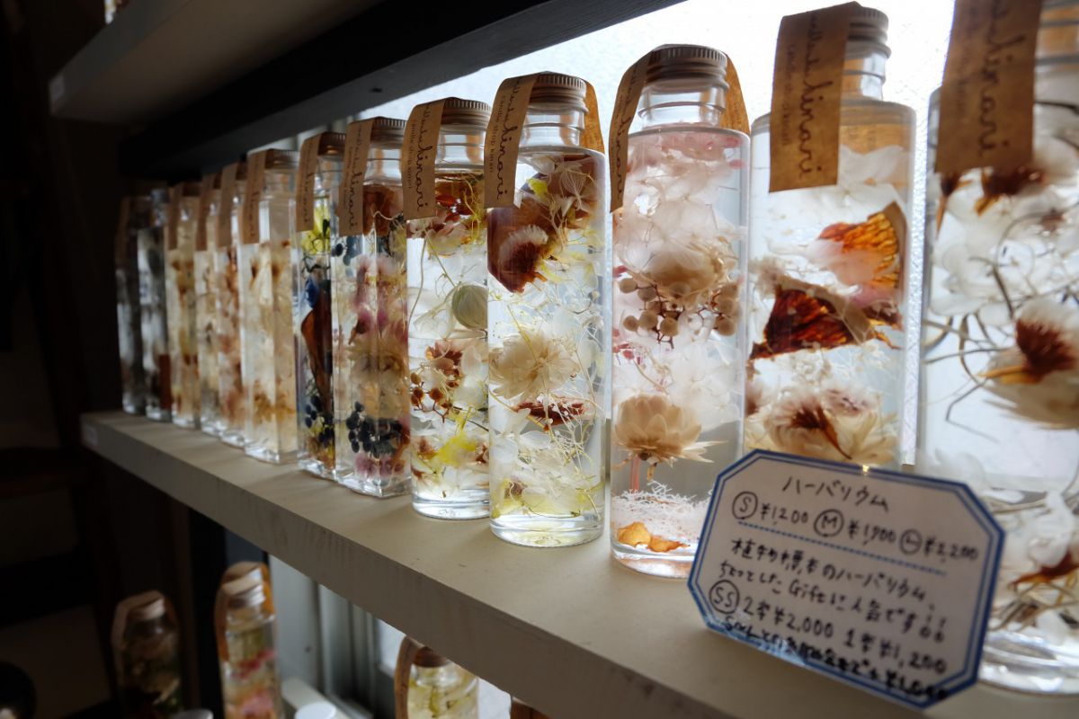 見た目もキレイな、ボタニカルキャンドルホルダー&ハーバリウム(3600円)も好評。キャンドルホルダーとハーバリウムを一緒に作ることができます。