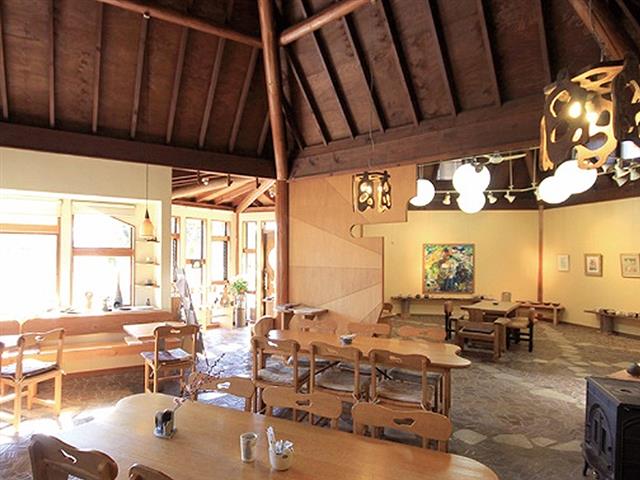 ギャラリーロードに面するカフェ兼ギャラリーで、木々に囲まれた五角形のとんがり屋根が目印。メルヘンチックな雰囲気は、まるでアニメに出てくる建物のようです。広々とした店内は、笠間焼や絵画を飾ったギャラリースペースがあり趣ある作品は目の保養にも。自家栽培の野菜を使ったメニューや輸入パン、自家製スイーツなどをいただきながら、アーティスティックな空間を楽しみましょう。