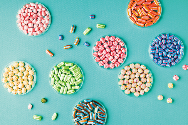 伝統技術に西洋の要素を加えてできあがった「Crochet」の京あめは、カラフルで繊細なデザインが光ります。食べるのがもったいなくて、部屋に飾っておきたくなるほどキュート。フレーバーは、梅や黒糖などの定番に加えて、フランボワーズやアップルサイダーなどのいまどきの味もそろい、季節限定の味まで約30種類ほどもあります。なかでも、京都本店限定のフレーバーは見逃せません。試食もできるので、気になるものは食べてチェック!好きなフレーバーはもちろん、かわいいカラーのものなど、欲張ってあれこれ買い込んでしまいましょう。