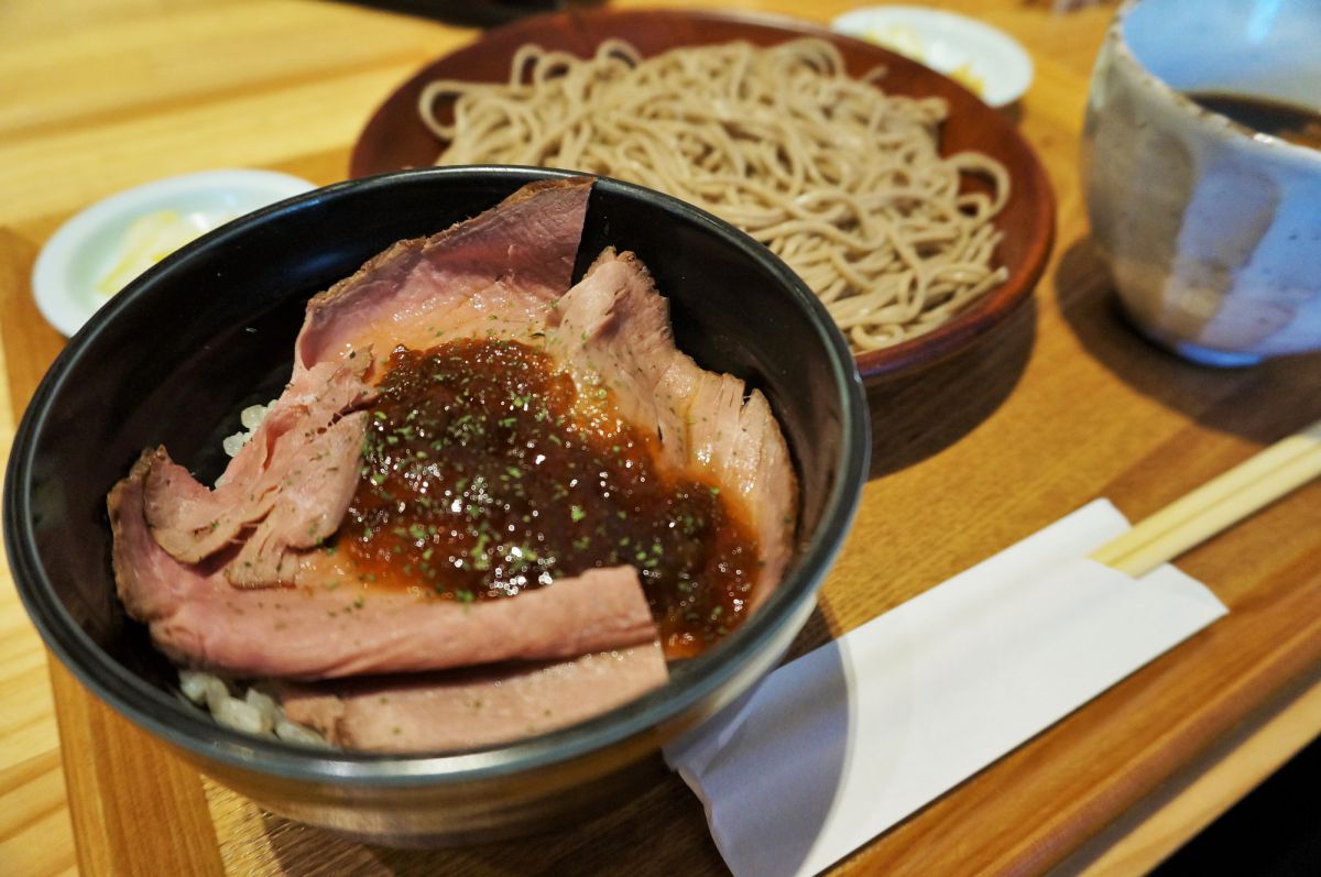 ランチの一番人気は「豚つけそばとローストビーフごはんセット」(税込1100円)。