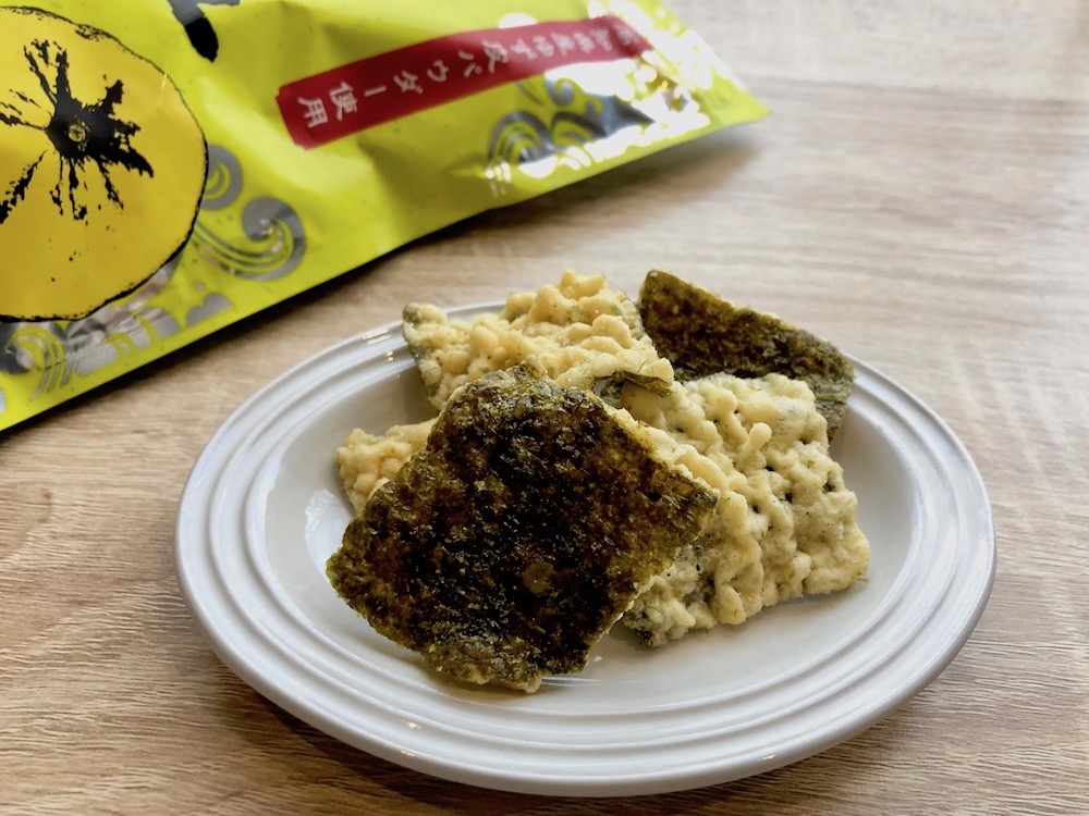 全体にしっかりとゆずパウダーがついていて、海苔の甘みと酸味、塩味のバランスがたまらない!