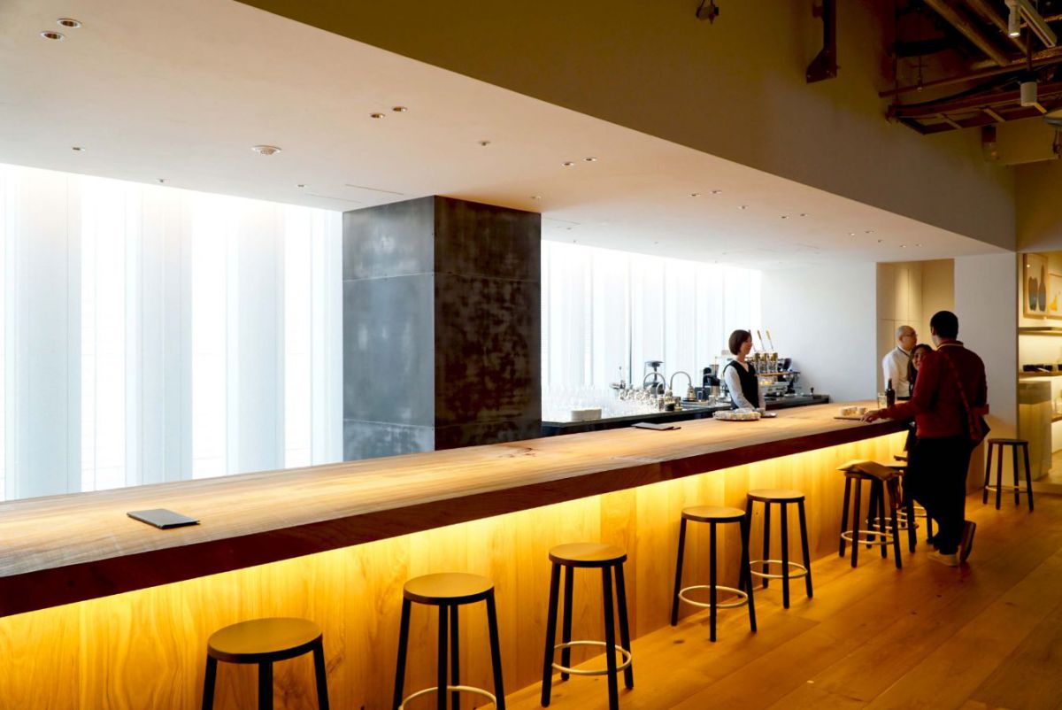 5つのゾーンからなるデザイン文化の発信基地。Salonでは厳選された生産者や作り手によるコーヒー、紅茶などが楽しめるほか、Loungeではイベントも開催しています。迫力ある10mのカウンターは、樹齢400年の楠から切り出した逸品です。