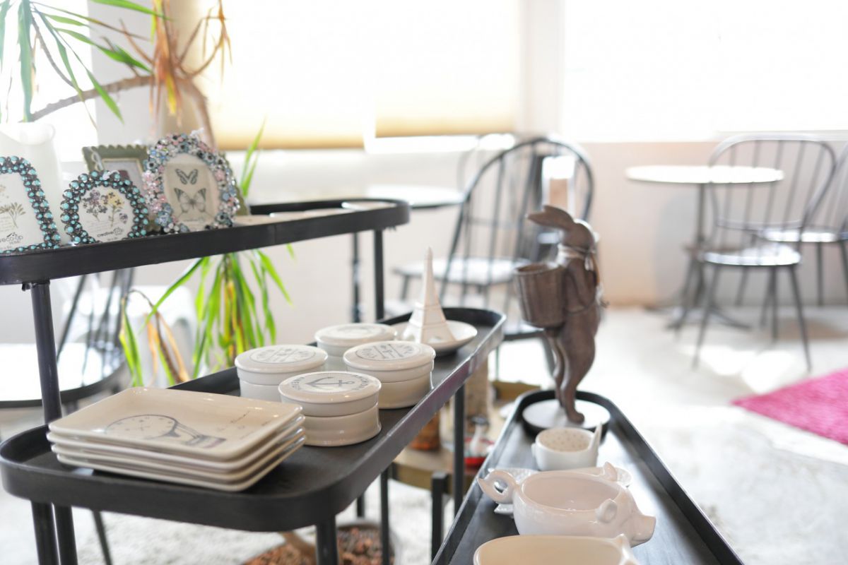 店内にはセンスあふれる器や雑貨などが並び、販売もしています。そればかりか、ソファやテーブルなどの家具もすべて購入可能。実際に使用感を試せるのがいいですね。