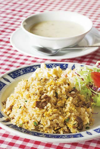 ビーフが入った、濃い目の味付けが評判の看板メニュー「フライライス」(850円)。人気のホームメイドスープやサラダがついています。