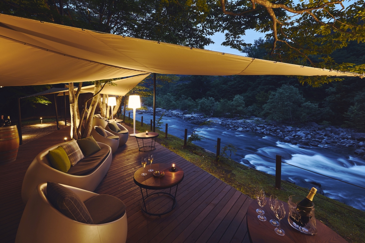 夕食は、昨年オープンしたフレンチレストラン「Sonore(ソノール)」でどうぞ。夕日に照らされてきらきらと輝く渓流を眺め、せせらぎを聞きながらする食事は、日常ではなかなか味わえない体験です。