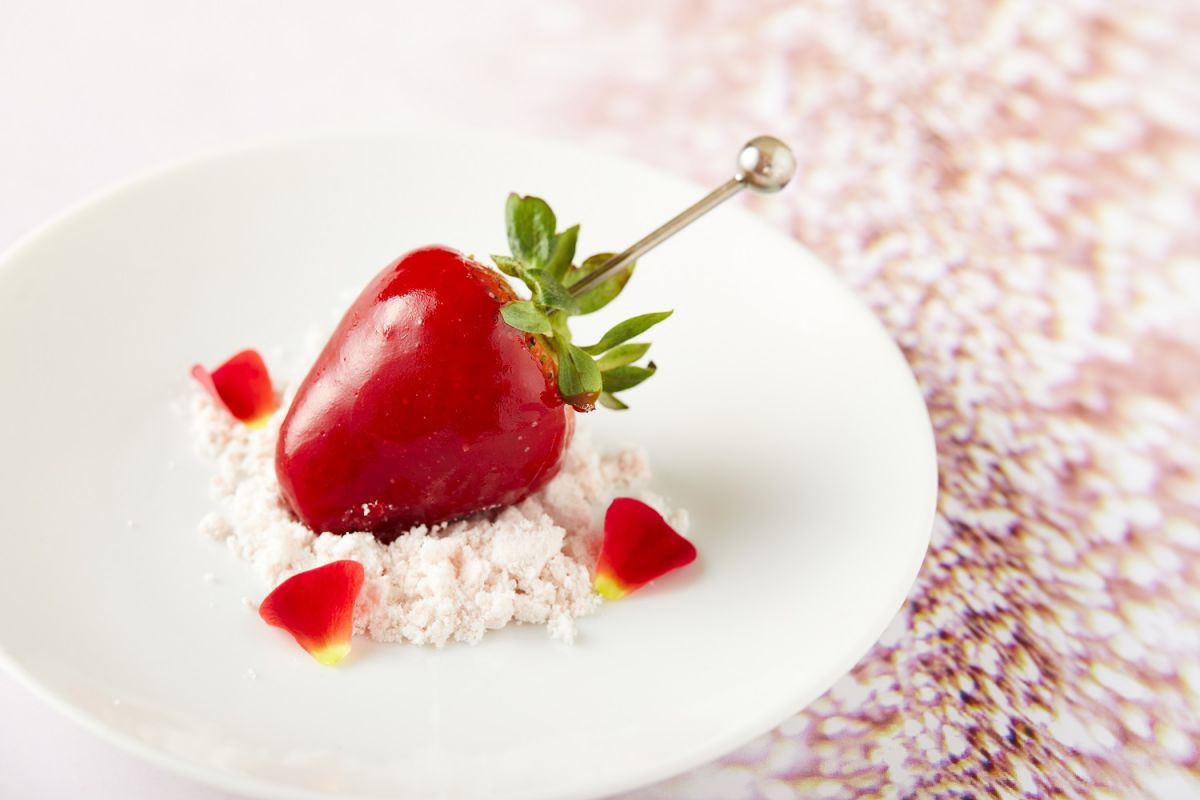 昨年、月2000食を記録した「“Sweet Strawberry time”苺づくしのアフタヌーンティーセット」4200円が今年も登場。ジュレでコーティングした大きないちごの前菜からスタート。