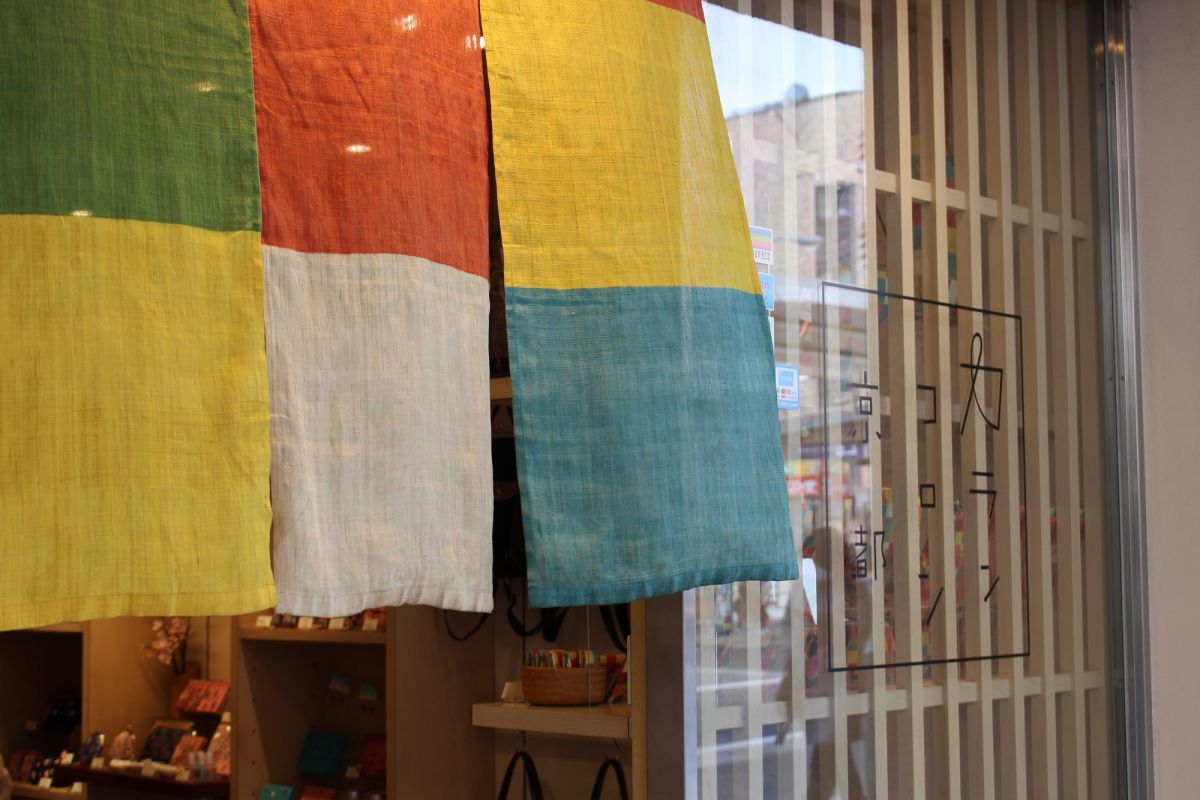 阪急京都河原町駅から地上に上り、四条通りの北側に面した場所にお店があります。市松模様のカラフルなのれんが目印です。