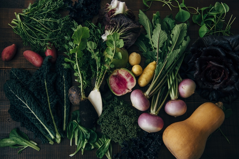 2010年イギリスから千葉県へ移住し、農業経験なしで山を切り開き、豊かな自然の中で育った無農薬の野菜を多品種で作っている「The Hive and Barrow(ハイブ&バロウ)」の美味しい新鮮な野菜を毎日販売。フレッシュな野菜をそのまま使った絶品フムスや、スープベース、ピクルスなどの加工品も一緒に並びます。