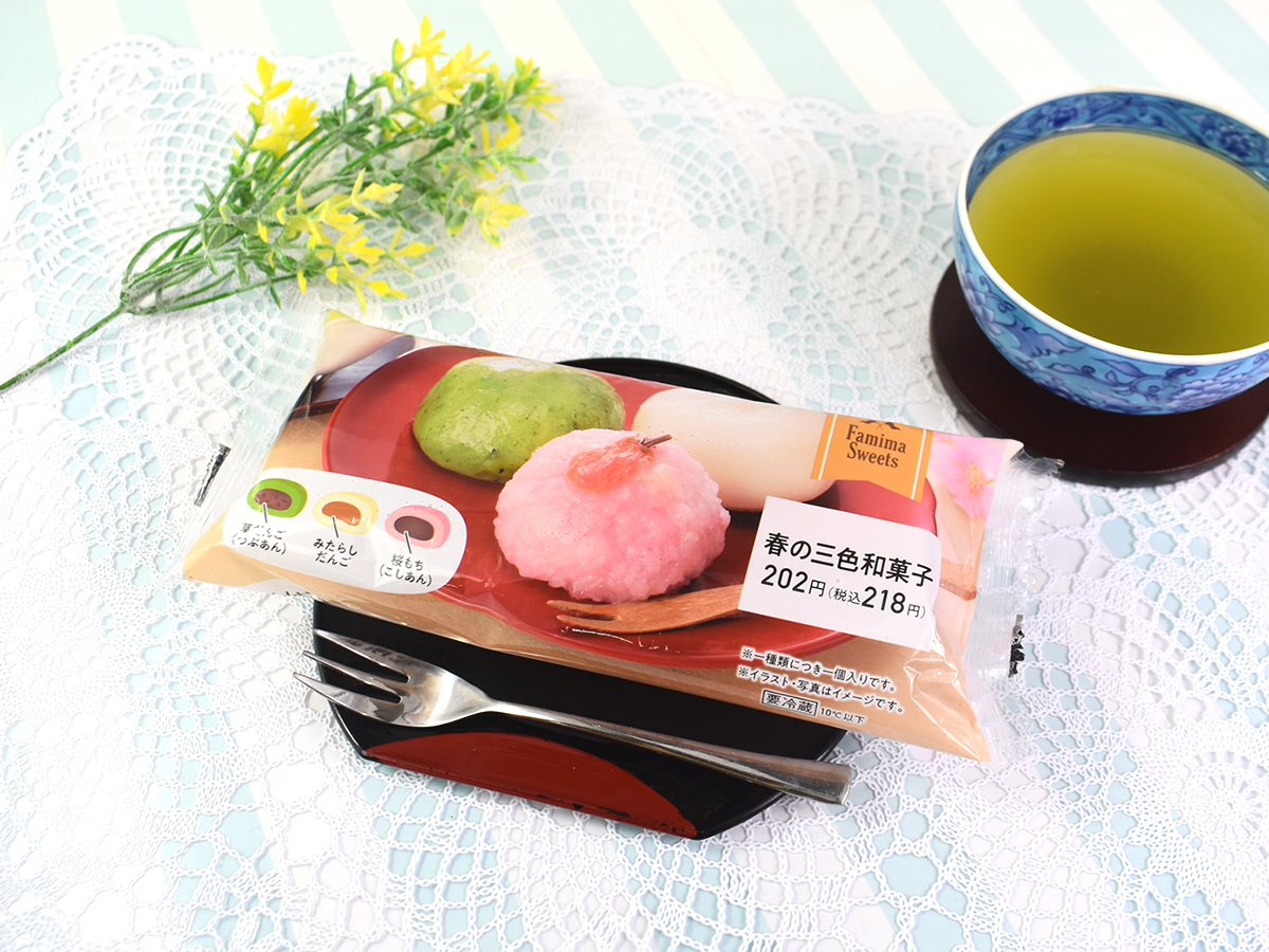 パフェやケーキもいいけれど、春といえば楽しんでおきたい和スイーツ。今回ご紹介するのは、ファミリーマートの「春の三色和菓子」(218円)です。「桜もち」「草だんご」「みたらしだんご」の3種類を味わえる和菓子セットをさっそくレビューしてみましょう。