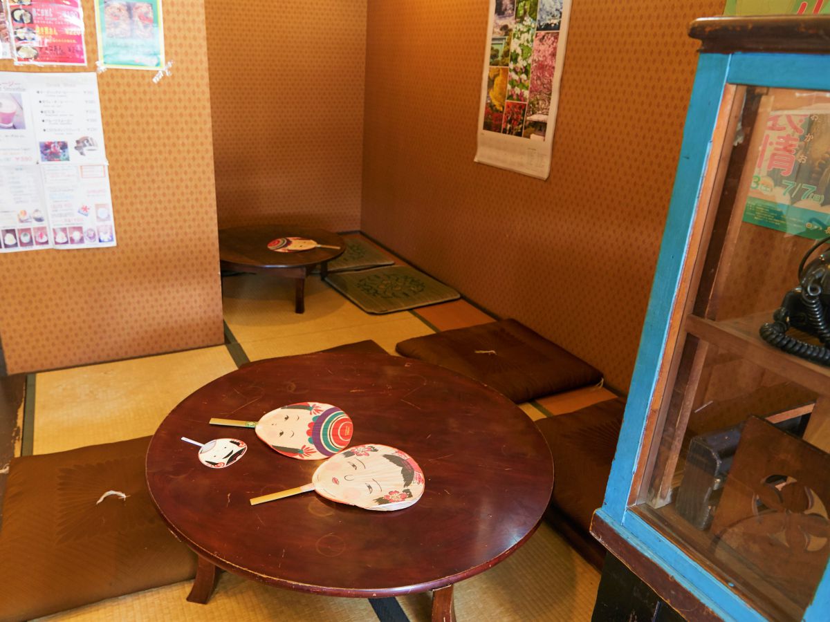 お店の奥には、小上がりの和室が。ちゃぶ台の席でのんびりくつろげるのも駄菓子屋さんの醍醐味ですね。大正ロマン感じるアンティークの椅子席もあるので、お好みでどうぞ!
