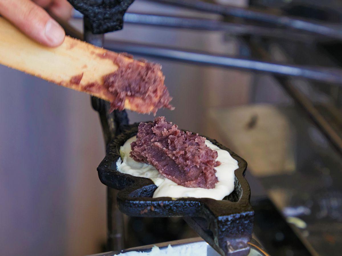 火加減とちょうどいい餡の量”がポイントになるそうで、生地の上に餡をのせたら4~5分で完成です。