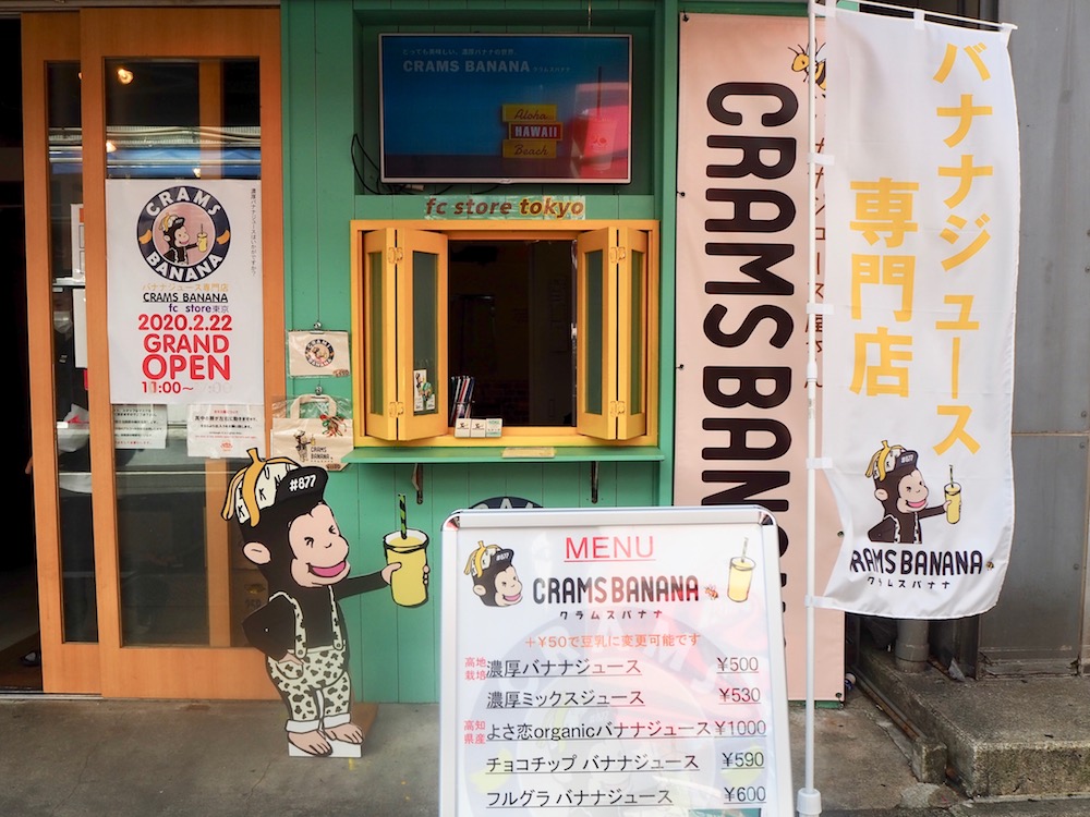 末広町駅から徒歩3分の場所に位置するバナナジュース専門店「CRAMS BANANA fc store東京」。