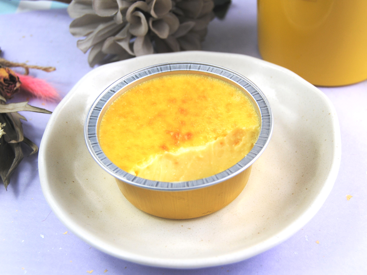 ゴールドカラーの容器に入っている「なめらかバスクチーズケーキ」。表面にこんがりと焼き色がついていて、まるで“焼きプリン”を彷彿とさせる見た目です。顔を近づけて息をおもいっきり吸いこんでみたところ、チーズの独特な香りが鼻を抜けていきました。