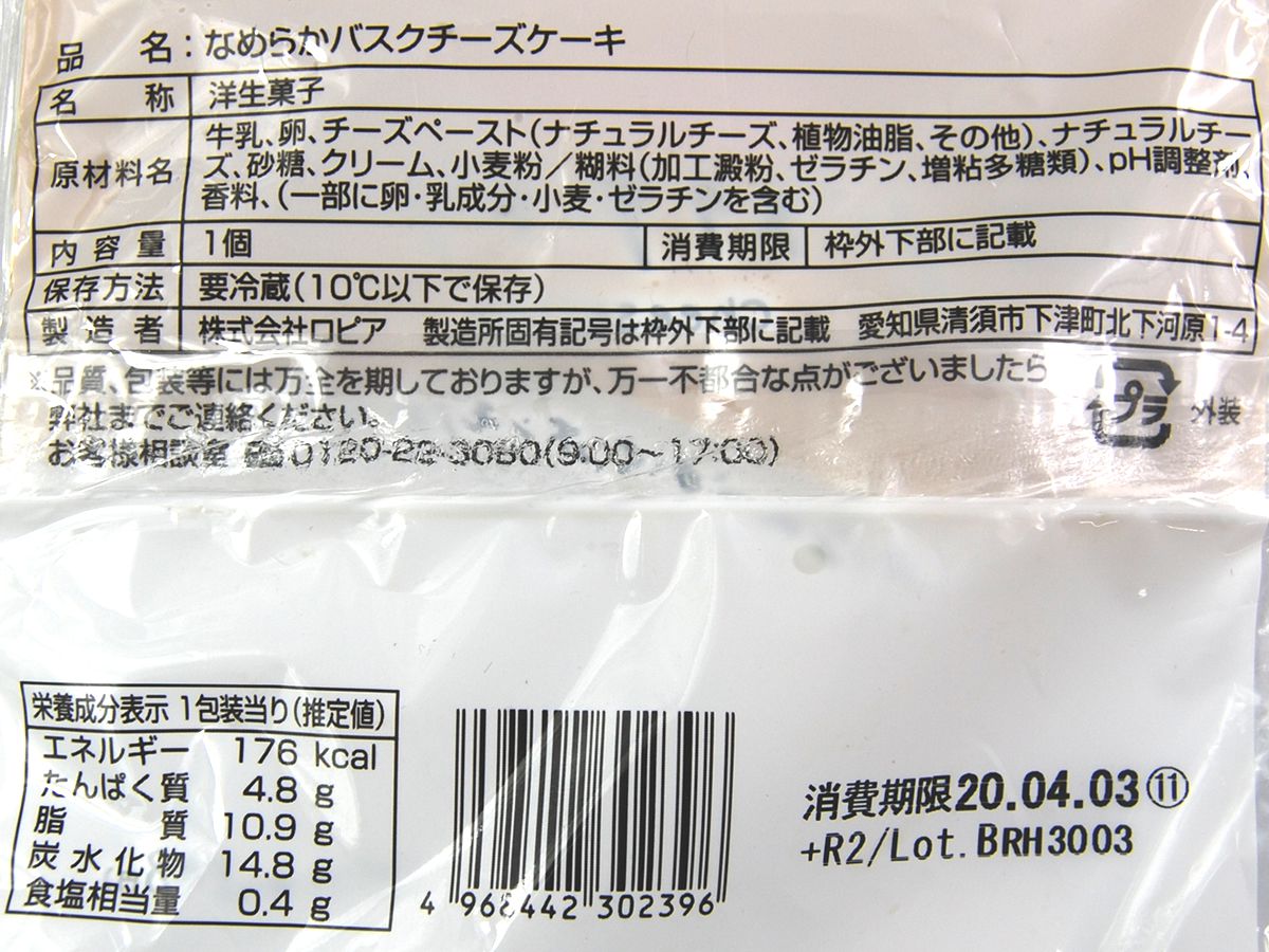 「なめらかバスクチーズケーキ」(ファミリーマート)