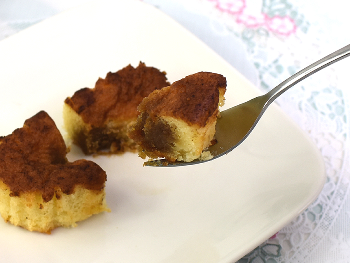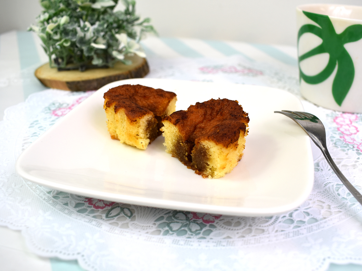 食べ進めていくと、なにやらケーキの中に白あんのようなものを発見。こちらは「和」を彷彿とさせる甘さが特徴的で、栗のような味を楽しめます。ケーキの中央に少ししか入ってませんが、いいアクセントになっていてGOOD!