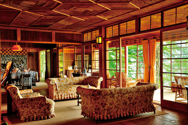 「英国大使館別荘記念公園」もまた、イギリス大使が使っていた別荘を復元したものです。建物やインテリアなど、隣接する「イタリア大使館別荘記念公園」とはひと味違っていて、シンプルでモダン。ここでは、館内にあるティールームでイギリス風のティータイムを楽しむのがおすすめ。中禅寺湖を眺めながら、紅茶とスコーンをいただいて、優雅なひとときを過ごしましょう。