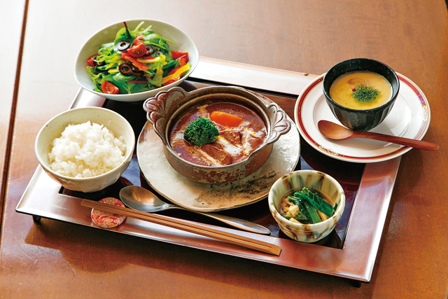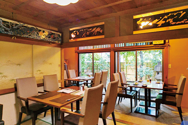 石畳のエントランスに、小川の流れる庭園、レトロでモダンなしつらえ。旧邸宅を改装したというレストランは、神楽坂らしい趣たっぷりです。少し敷居が高いかなと尻込みすることなかれ!ランチメニューはリーズナブルなので、ちょっとした贅沢気分で訪れることができます。牛タン江戸味噌シチューをメインにした和らく御膳や湯葉づくし膳など、和洋折衷のメニューは選ぶのも楽しみ。美しい和風庭園を眺めながら、優雅なランチタイムを過ごしましょう。