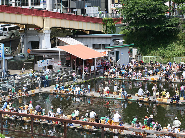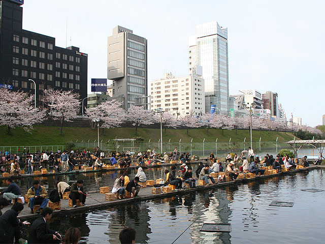 こんなところに釣り堀があるなんて!と驚くのが「市ケ谷フィッシュセンター」。なんと、JR市ケ谷駅のホームから見えるお濠の一角にあるのです。5つある大きな生け簀は鯉池になっていて、釣り好きの人に大人気。小さな生け簀の金魚池も用意されているので、釣りに自信がないという初心者さんでも楽しめます。釣り糸を垂らして水面を見つめていると、いつの間にか無心になってリラックスできるのもいいですね。ストレス発散にもおすすめです。